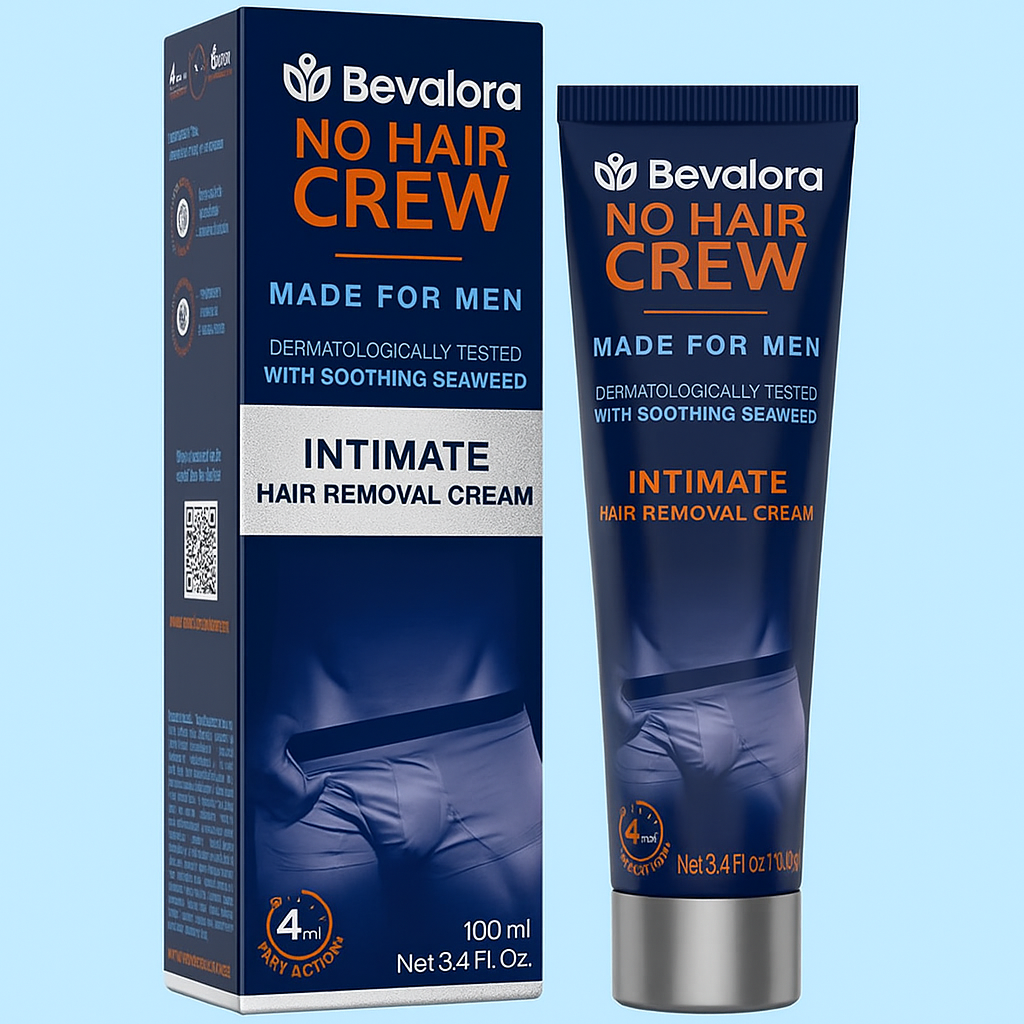 Bevalora® Intimate Hair Removal Cream is dermatologically tested and formulated specifically for men's sensitive areas. Infused with soothing seaweed extract, this gentle yet effective formula removes unwanted hair in just 4 minutes without razor bumps, cuts, or irritation. It leaves skin smooth, comfortable, and bump-free for confident grooming.