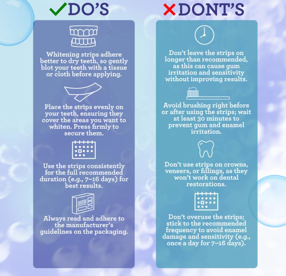 7. Avoid eating or drinking (except water) while wearing the strips.