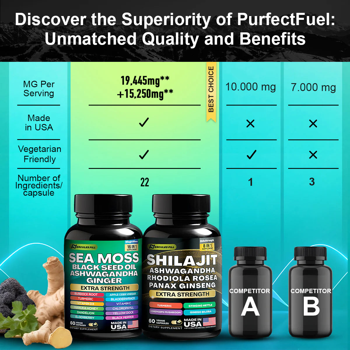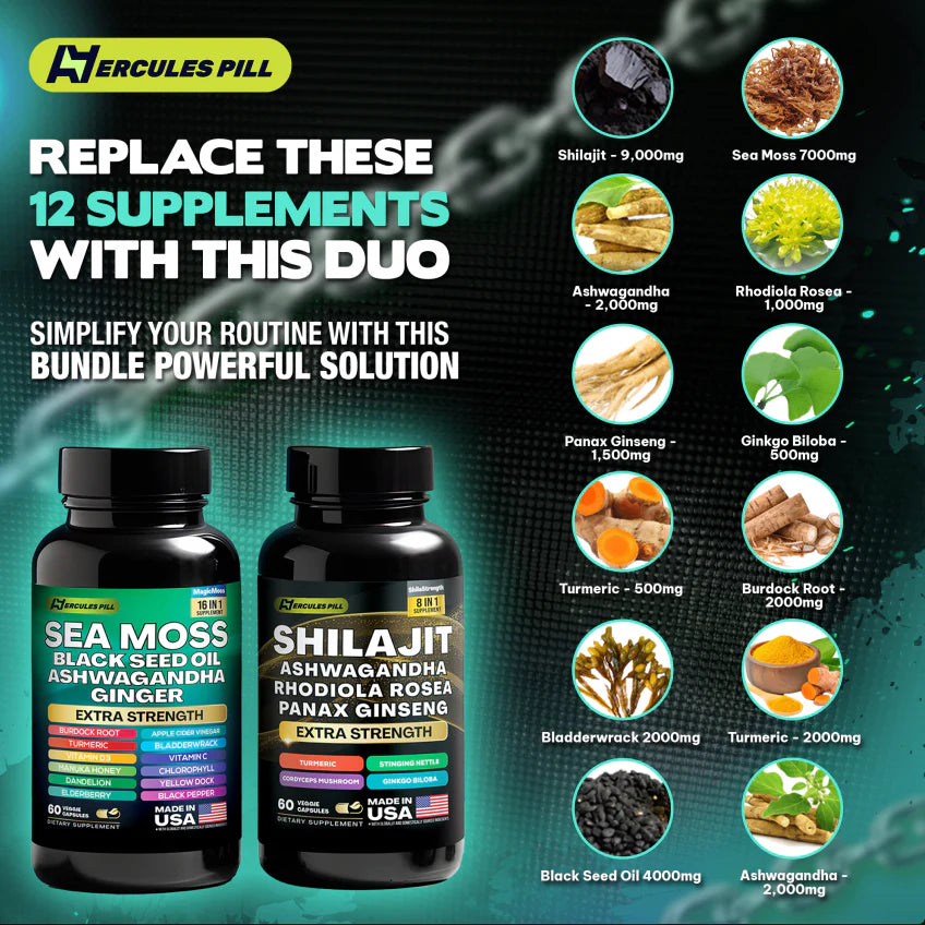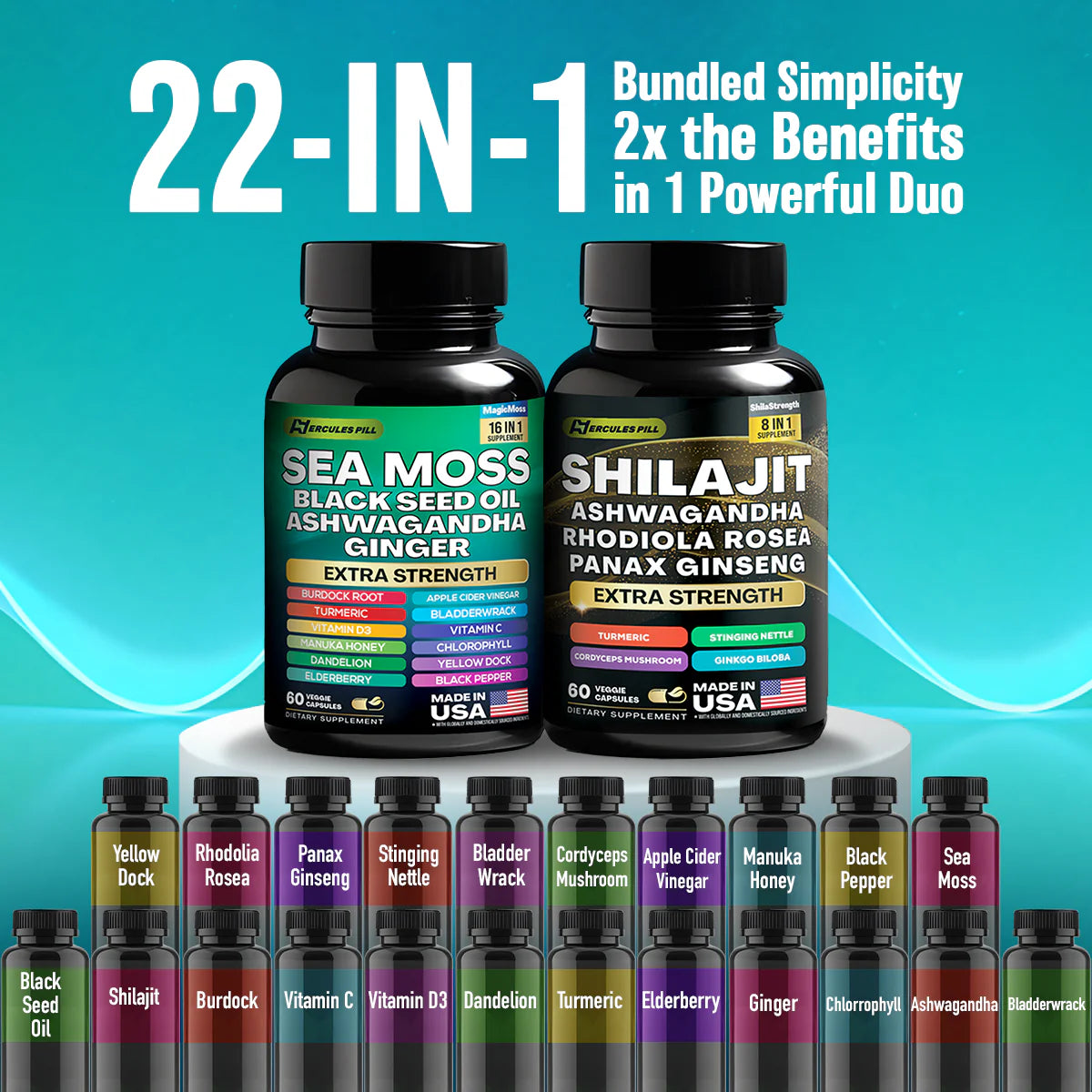 Unleash the power of the ocean with our MagicMoss and ShilaStrength Super Blend Capsules, featuring highly potent clinically dosed formulas.